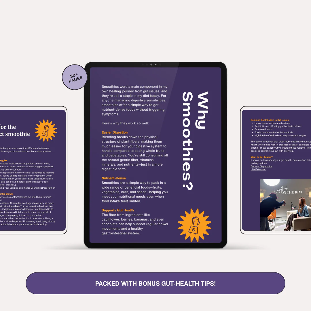 These aren't your average smoothies. This collection features Bethany's personal smoothie creations - the exact recipes she's developed over years of experimenting in her own kitchen. From Thick Strawberries 'n' Cream to Dubai Chocolate Pistachio, each one is designed to taste indulgent while supporting your digestive health.