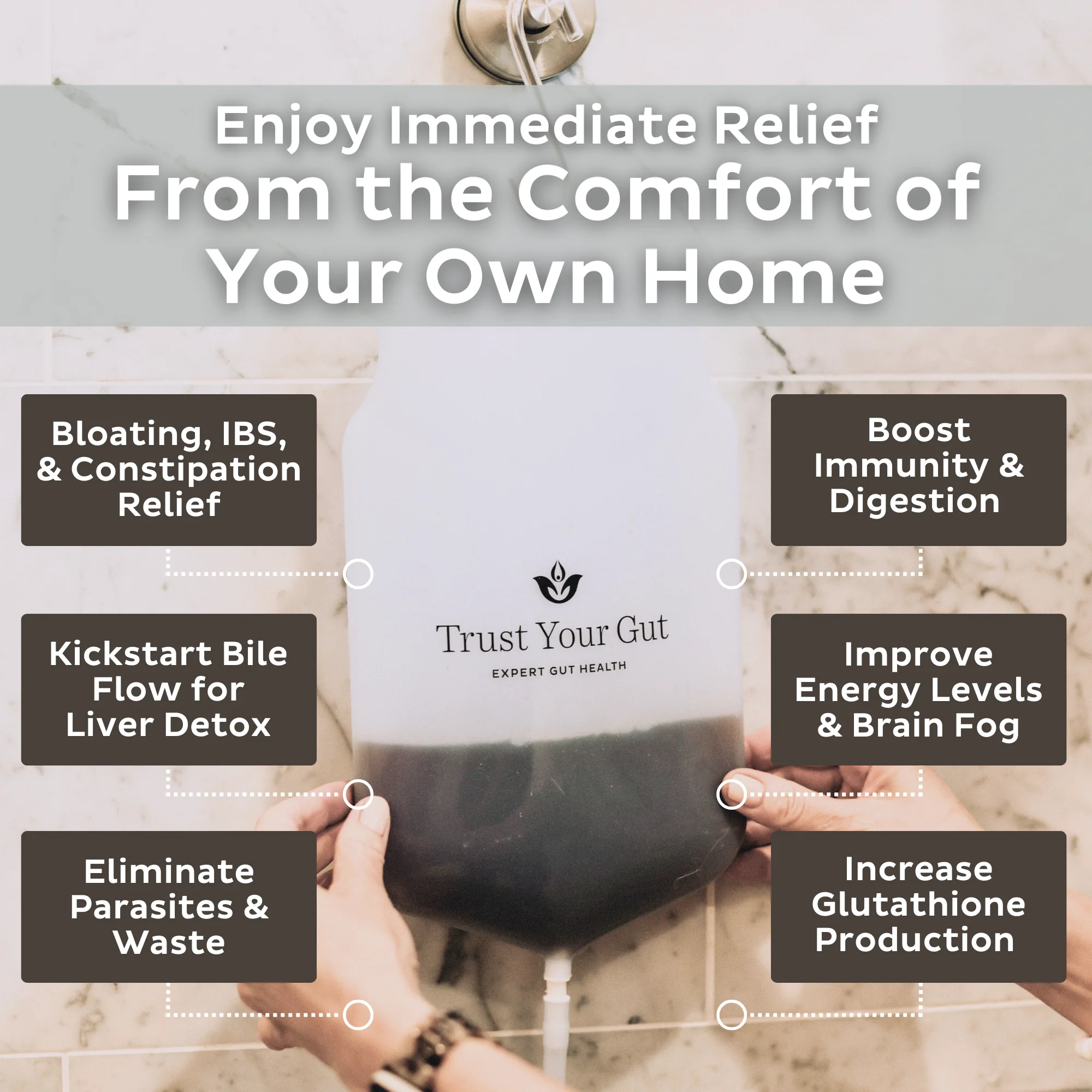 Get immediate relief from constipation, bloating & IBS symptoms with this at-home silicone enema kit. It’s like a mini colonic you can do from the comfort of your own home. Made from premium non-toxic silicone, the kit also includes an extra-long hose, a travel bag, instructional booklet, and replacement nozzle tips! Go ahead, your gut will thank you.
